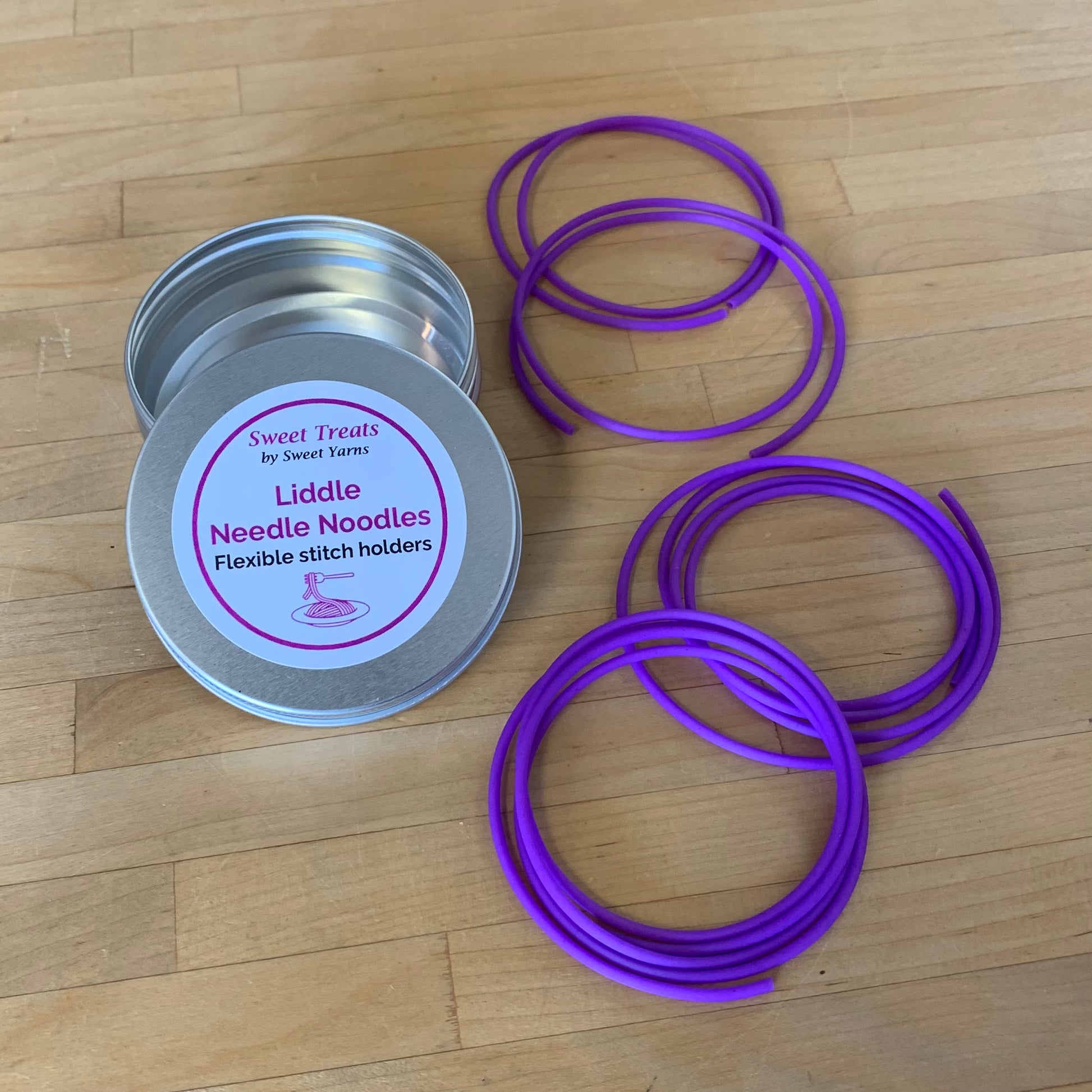 - Liddle Needle Noodles - these flexible stitch holders are the same as the Needle Noodles but come in shorter lengths, perfect for thumbs or shoulder stitches. Comes with two 30" and two 15" tubes in a tin case.